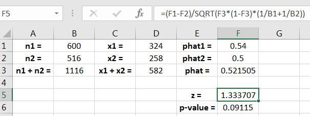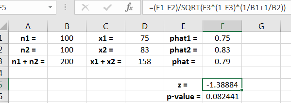 The value is called the pooled sample proportion. The following examples show application of the test.