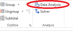 In Excel, locate the button Data Analysis within the ribbon tab DATA, as seen in Figure 3.16.