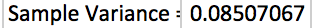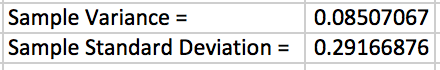 Begin by generating the random sample of 10. For simplicity, suppose it is the same as that in Figure 3.56. We saw that the sample variance was 0.085070668. Taking the square root of this number, we obtain the sample standard deviation, as desired.