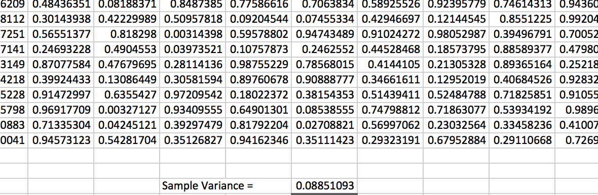 Adding up this column and dividing by will result in the sample variance for the randomly generated data. (Note that and .)