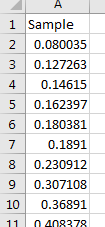 In Excel, we generate a random sample of 20 data. To find , , and we first want to organize the data from lowest to highest in value, as seen in Figure 3.62