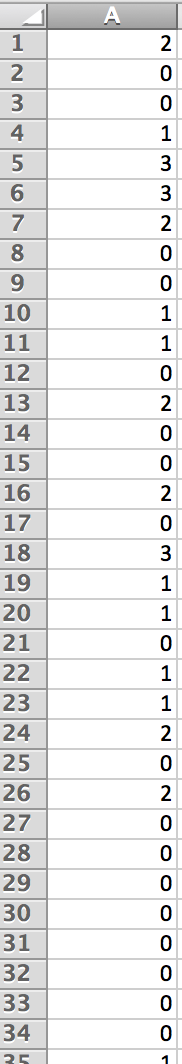 In Excel, let’s simulate 5000 families. The figure below shows a snapshot of the families simulated.
