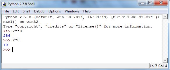 To compute in Python, type x**y. Figure 5.5 demonstrates Be careful, 28 does something different (note the output).