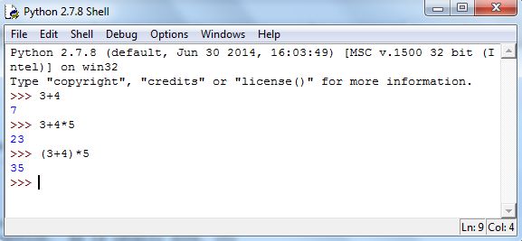 Addition, subtraction, multiplication, and parentheses work in Python as in Excel. Try computing and in the Shell. You should see Figure 5.3.
