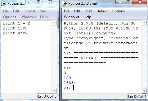 To run the code, select Run Module from the Run menu. Save the file, if necessary, and Python will automatically run the commands in a new or restarted Shell. But, Python will suppress the output of executed commands, unless you specify otherwise. One way to see the output is to use the print command, as follows: