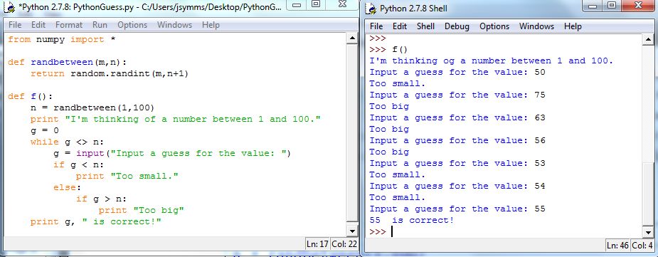 Let’s construct a function that does the following: The function uses randbetween(1,100) to generate a random number between 1 and 100. The function then repeatedly asks the user to guess the value of until correct. When a guess is incorrect, the function informs the user if the guess was too high or too low.