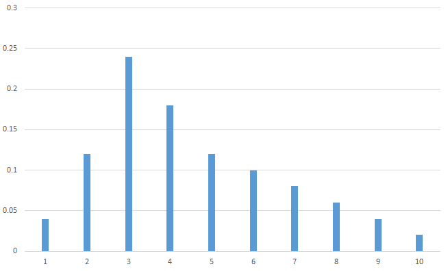 We now consider a different population. This population too will be large and consist of integers from 1, 2, 3, …, 10. But, the proportions will be as follows: