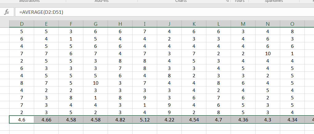 At the bottom of each column, compute the corresponding sample mean: