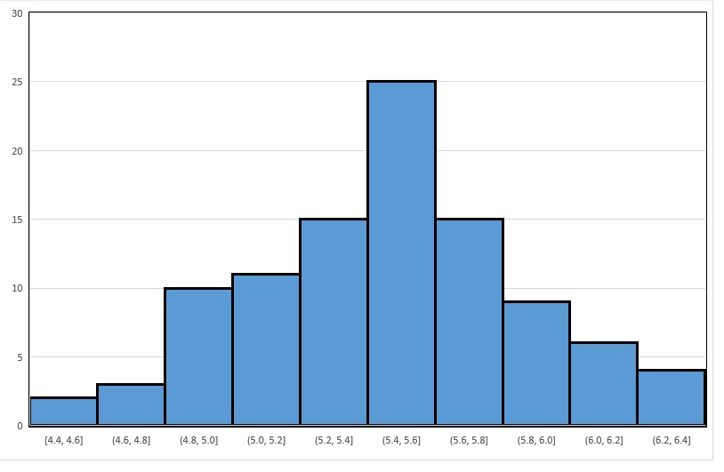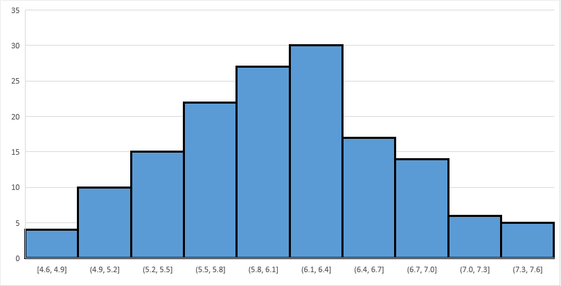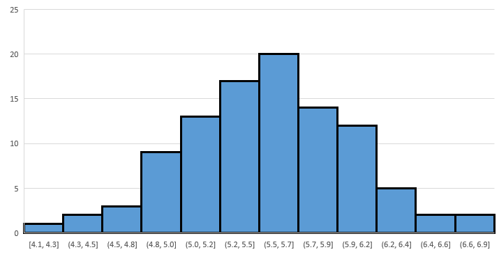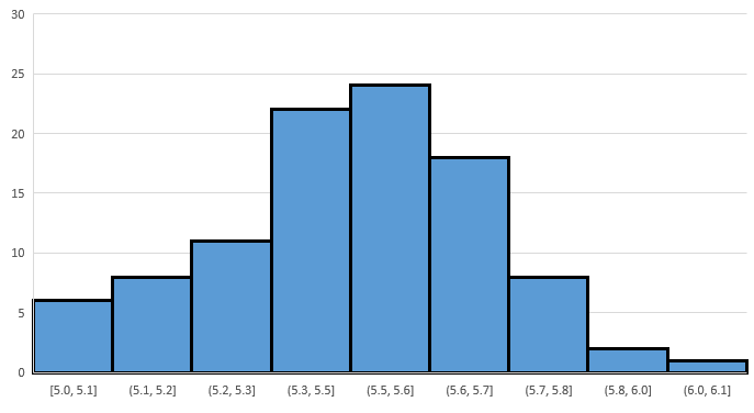 Using Excel’s Insert Statistics Chart command on the Insert tab will yield a result similar to the following: