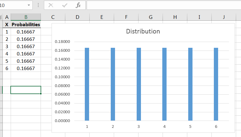 Additionally, a discrete random variable distribution can be graphed as follows: at each location along the horizontal axis, draw a stick with height equal to In Excel, the table and graph will could look like Figure 7.1.