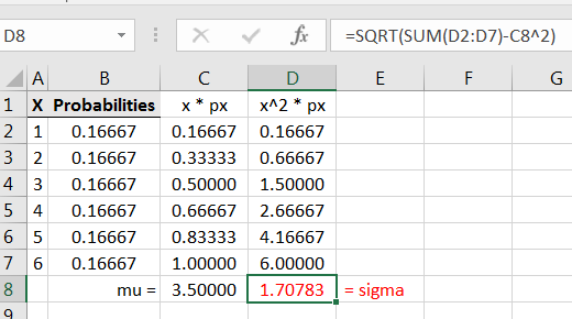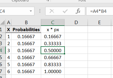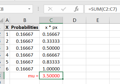 In words, here’s what you do: for each possible value multiply it by its corresponding probability and then add up all of those products. That gives the mean 2727If the number of possible values of is infinite, then the sum 7.2 (and hence the mean) might not exist. Tackling infinite sums is a problem introduced in calculus.