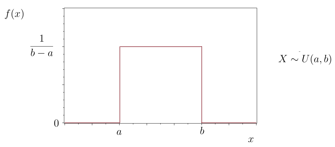 For purposes of computing probabilities with ease, the uniform distribution is handy. Suppose that is a continuous random variable with p.d.f. We say has a uniform distribution if there are real numbers and with such that