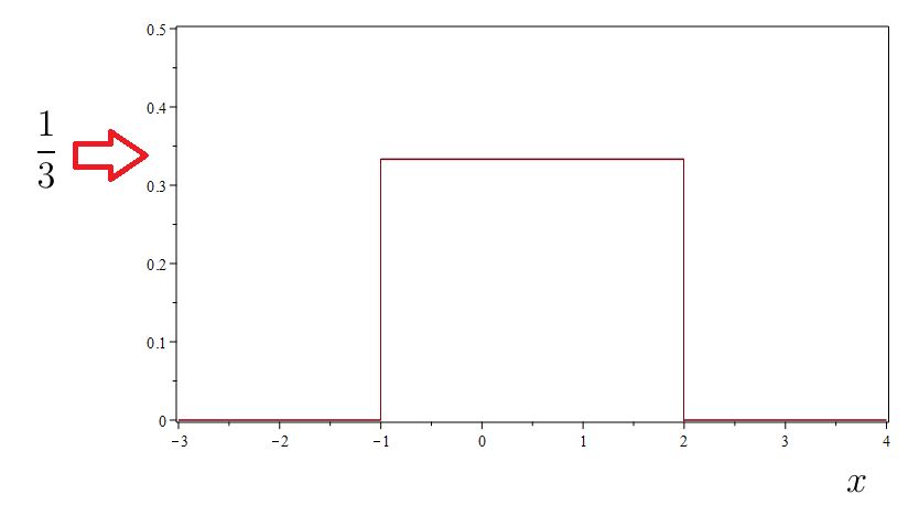 In graphing the uniform distribution, over the interval draw a rectangle of height as shown in Figure 7.7.