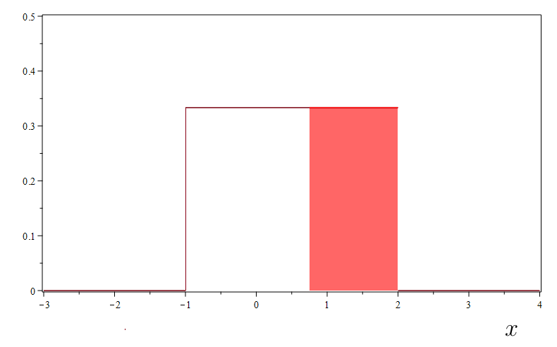 Computing probabilities amounts to computing areas of rectangular boxes, as illustrated in the next example.