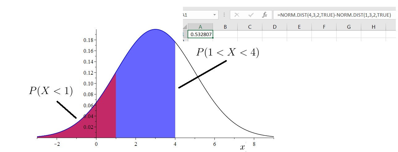 The Excel command NORM.DIST approximates areas for a normal distribution. Given and any real number then