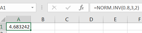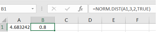 If we apply NORM.DIST to the prior result, we’ll get 0.8, demonstrating the relationship between NORM.DIST and NORM.INV.