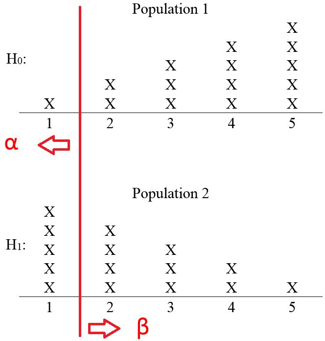 Suppose that one of the populations is chosen at random, but without us knowing which was chosen. Now from the chosen population, suppose that a random sample of size 1 is selected. Based on the sample, we are to make a decision on the following hypotheses: